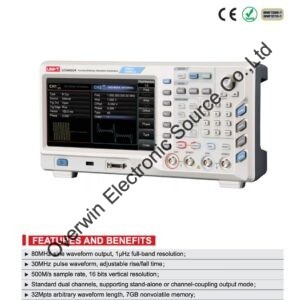 UTG4000A series is a multi-functional signal generator combines with function generator, arbitrary waveform generator, pulse generator, harmonic generator, analog/digital modulator, frequency counter and other functions; It has equal performance dual-channel design, making sample rate up to 500MS/s, maximum arbitrary wave length up to 32Mpts. It has 7GB nonvolatile waveform storage, domestically first optional digital signal generator output module, 8 inches wide screen LCD displays, humanized interface design and reasonable function keyboard layout, which give users a more personalized experience.